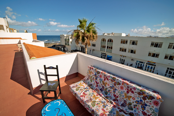 Situado cerca del puerto de Corralejo, está cerca de muchos servicios, restaurantes, cafeterías, panadería, supermercado. La primera playa tranquila para bañarse con los niños está a 600 metros.